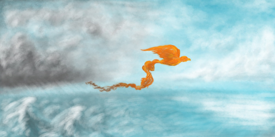 Dette bildet handler om å fokusere på det positive. Fuglen flyr fra den mørke, kaotiske, negative siden, til den lyse, rolige, positive siden.